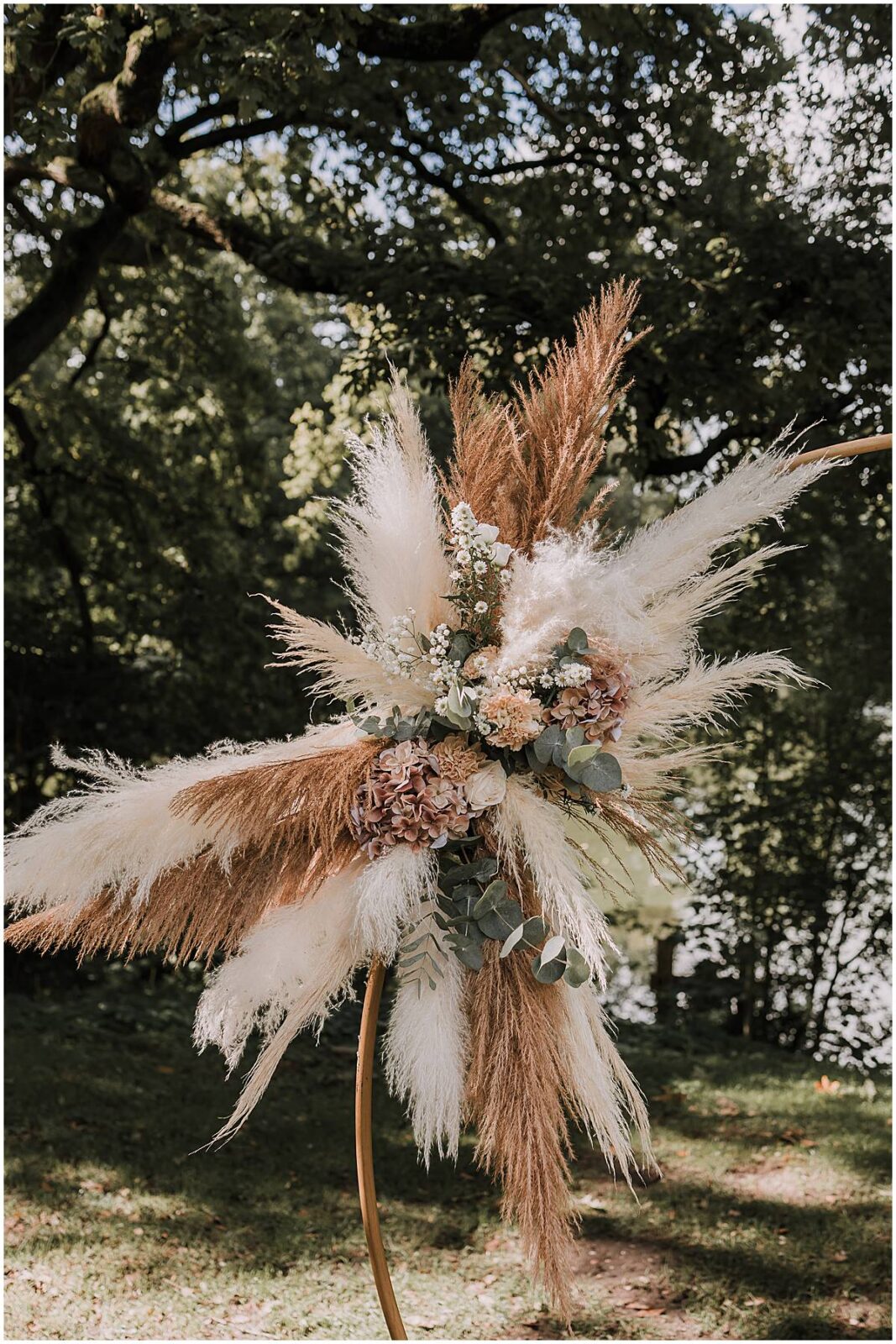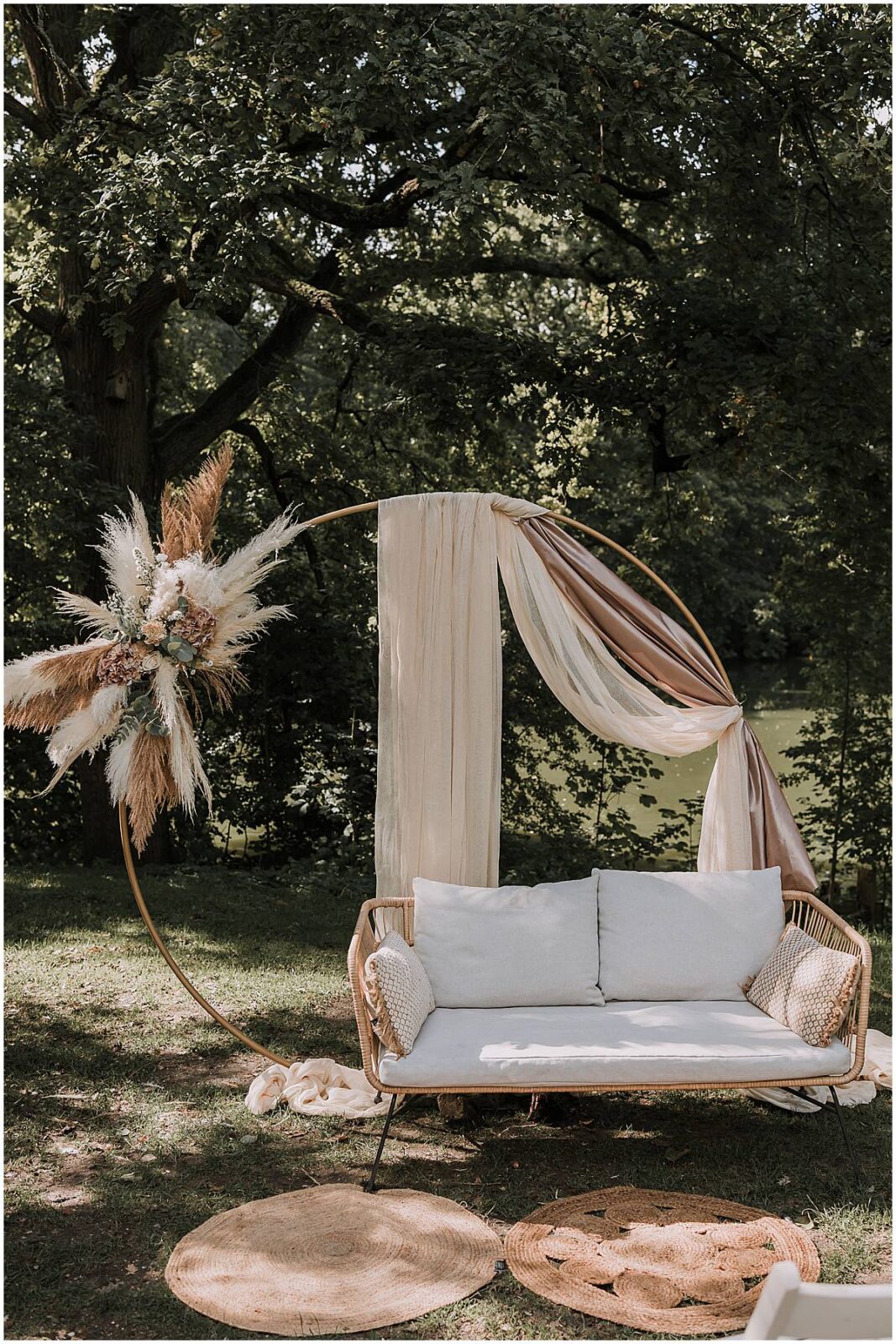 De ceremonieplek zelf was prachtig gestyled: zachte kleuren, mooie bloemen, aan alle details gedacht en naast het water. Alles klopte en paste perfect bij deze groene trouwlocatie. Hoe tof dat ik dit ook kon vastleggen met mijn drone van bovenaf, voor extra diverse beelden.